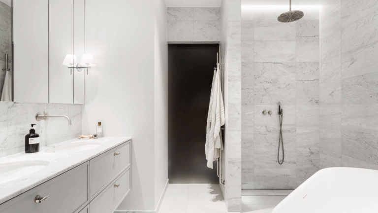 Funksjonelle og stilrene baderom i en leilighet fra 1912