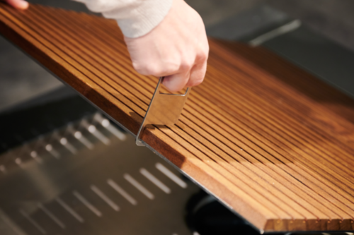 1. Løft slukristen opp. Løfteverktøyet gjør det lettere å løfte en stor rist.