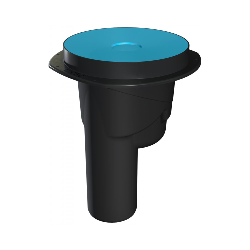 Vieser One vertikalt gulvsluk DN 75 i polypropylen med 75 mm bunnutløp og har en maksimal gjennomstrømning på 2,3 l/s.